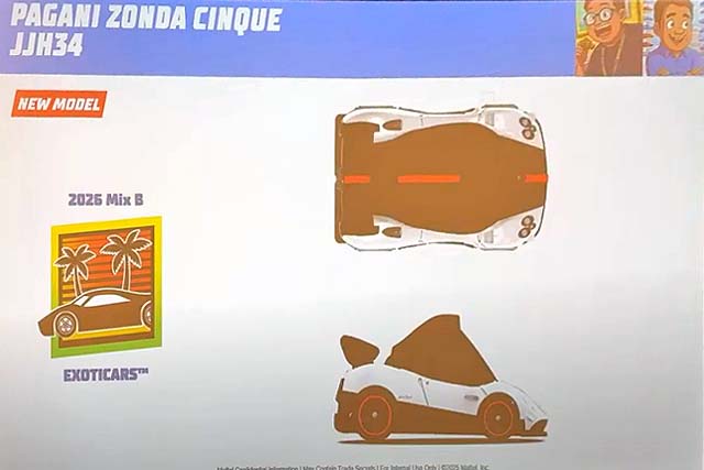 ダラーゼネラルの流通限定品(2025年モデルの3rdカラー)の紹介があったあとで、26BのNew Modelsとなるパガーニ・ゾンダ・チンクエが映し出されました。