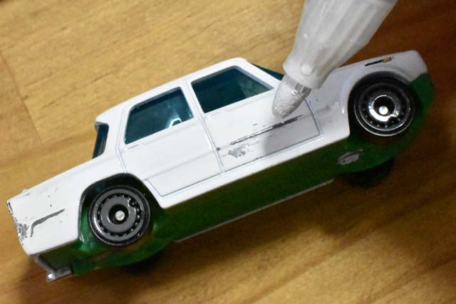 ↑例によって除光液でボディの塗料までもってかれてしまったので白ペンで補修しているの図