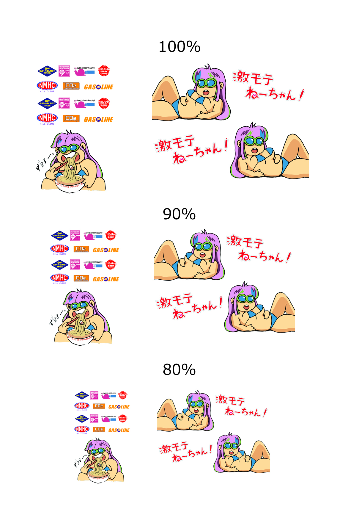 とりま、適当なサイズにデカールを作ってしまったので、今回のやつの90%および80%のサイズのものも追加してデータ化したものを置いておきます。