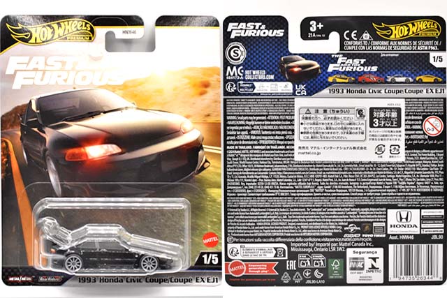 本日のアイテムは、2025年のワイスピ・プレミアムアソートより1993 HONDA CIVIC COUPE EX EJ1です。
