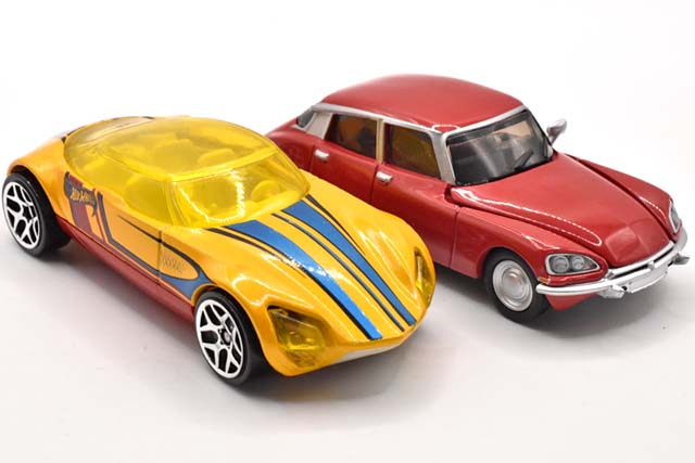 せっかくなのでホットウィールオリジナルカーのシトロエンDS(風)であるAVANT GARDEと並べて。