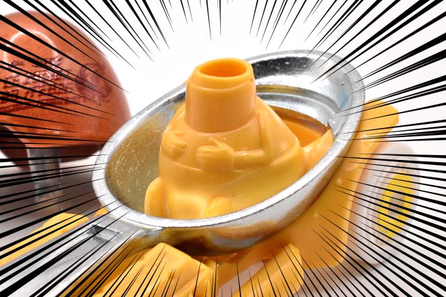 さてさてこのエッグシェルの中・・・何やら気になる黄色いパーツが入ってるんですよ。。。
